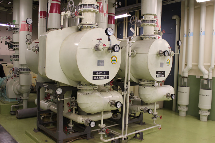 熱交換器には、蒸気と水で熱交換を行うものと、水と水で熱交換を行うものの2種類があります。